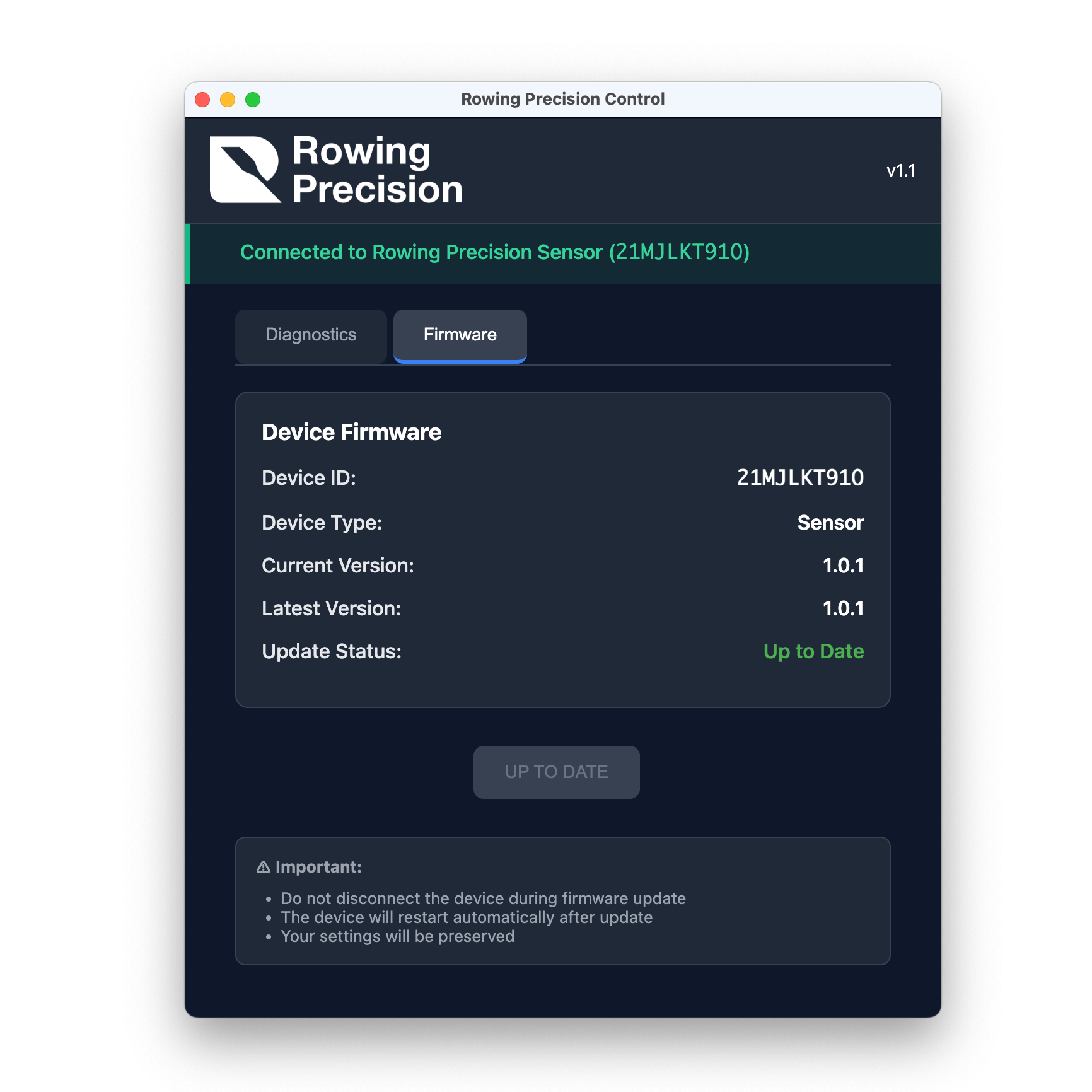 Our desktop application allows you to update the firmware on all Rowing Precision devices over USB-C, run device diagnostics, access audio recordings on the CoxPro Audio, and more.